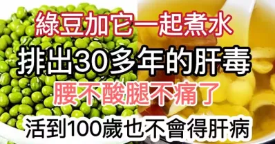 綠豆加它一起煮水,堪稱最強「肝臟排毒劑」,連喝三天,排出30多年的肝臟毒素,腰不酸腿也不痛了,活到100歲也不會得肝病
